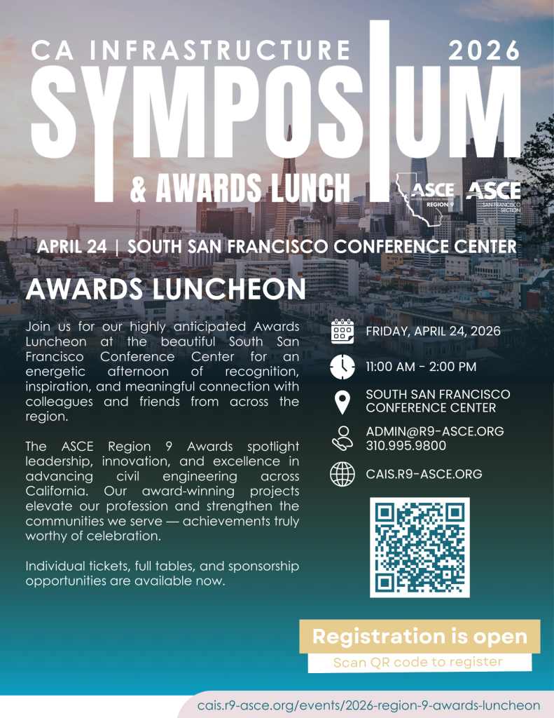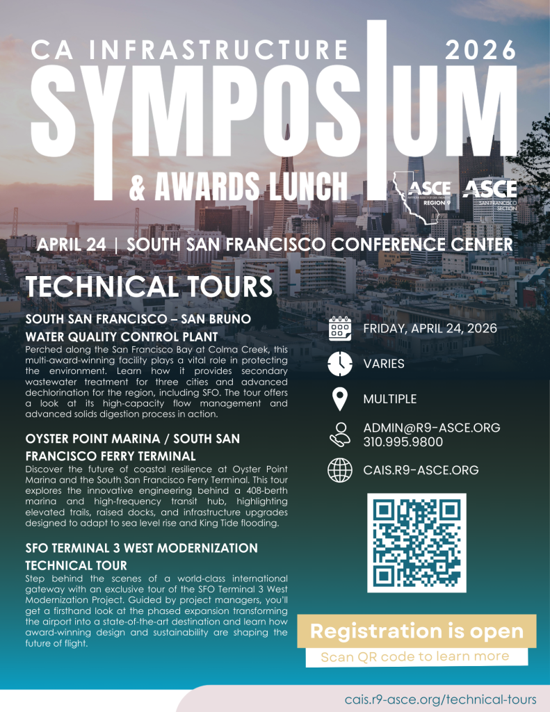 Join us in South San Francisco, at the heart of innovation and ingenuity, for the 2026 ASCE California Infrastructure Symposium (CAIS)—a high-energy, content-packed gathering of the people shaping what’s next for our state’s built environment. Whether you’re designing it, funding it, regulating it, building it, or maintaining it, this is the room you want to be in.